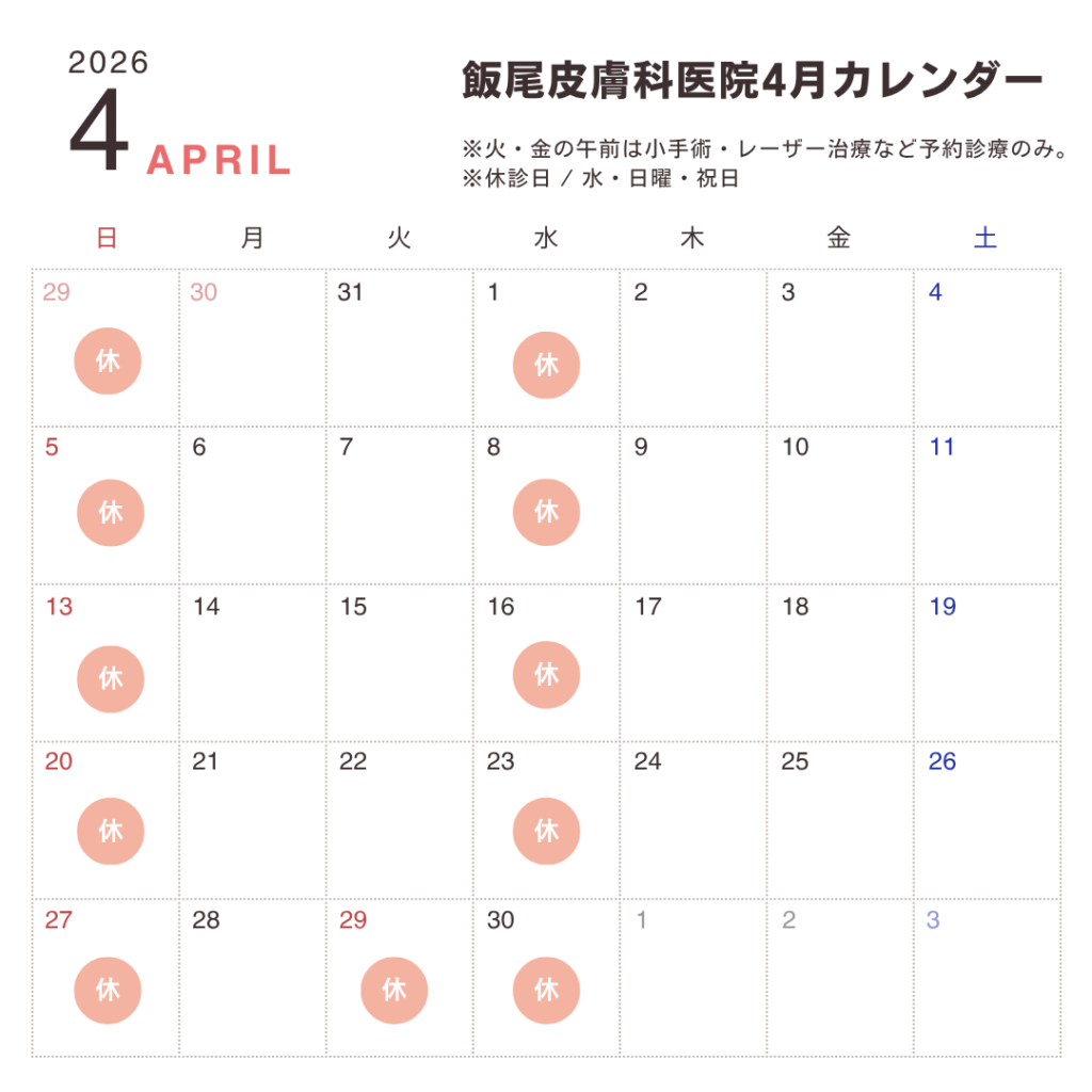 2026年4月の診療カレンダーです。