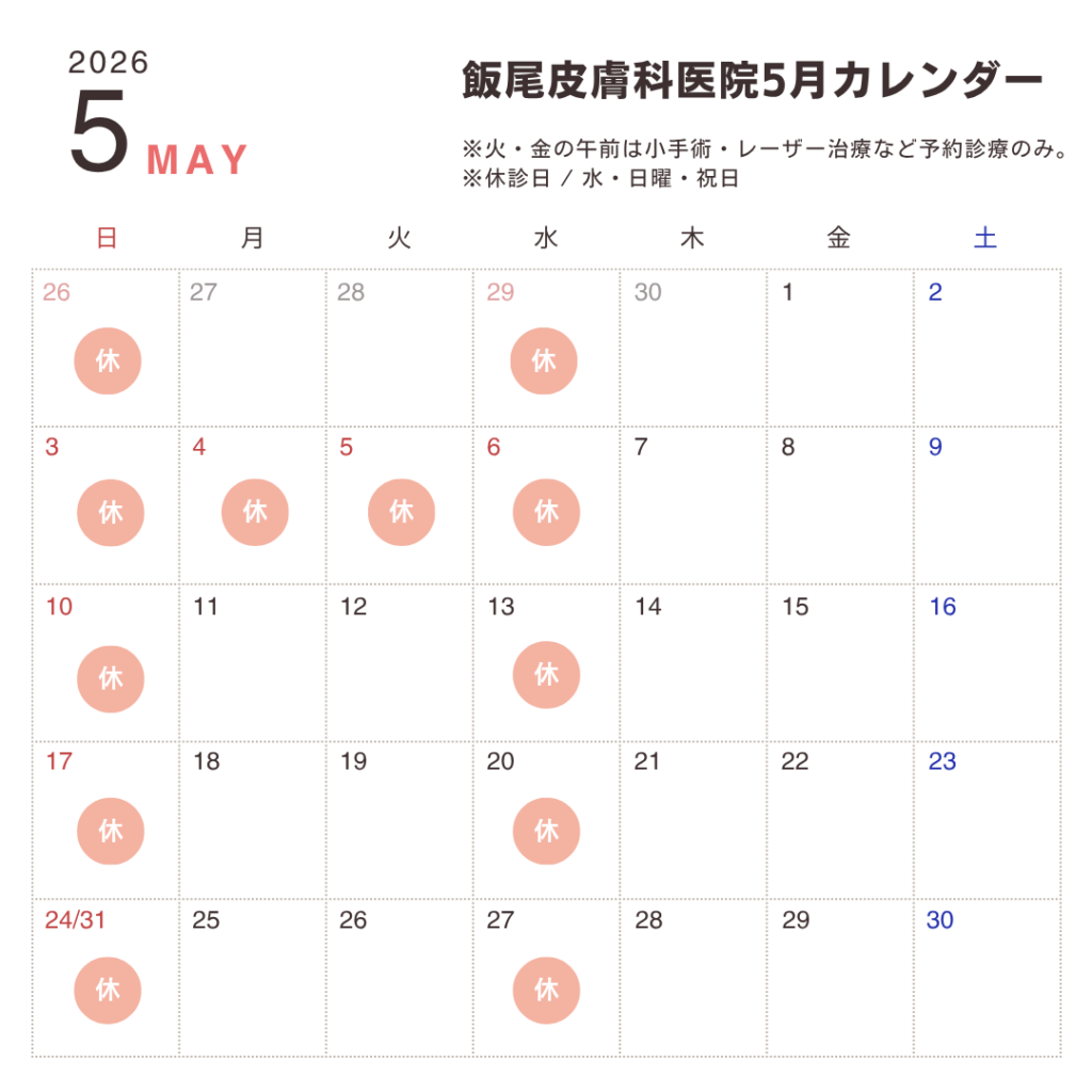 2026年5月の診療カレンダーです。